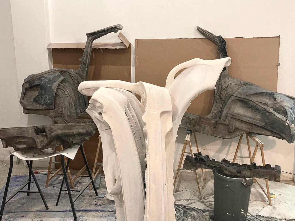 Πρόσφατα πέθανε μια αγαπημένη Βρετανίδα γλύπτρια που εκτιμώ πολύ, η Phyllida Barlow. Ήταν μια γλύπτρια αγωνίστρια, δυσκολεύτηκε πολύ να ξεκινήσει την καλλιτεχνική της καριέρα μιας και έκανε 5 παιδιά τα οποία έπρεπε να μεγαλώνει όσο δούλευε ως καθηγήτρια γλυπτικής. Θαυμάζω την επιμονή, την μαχητικότητα της αλλά και τον ελεύθερο τρόπο με τον οποίο πειραματίστηκε στα έργα της, σχεδόν σε σημείο που τα γλυπτά της τα κλοτσούσε ή τα πετούσε με αποτέλεσμα να ανακαλύπτει νέες πλαστικές ‘λύσεις’, μου αρέσει γιατί έκανε αντιμνημεία χρησιμοποιώντας εφήμερα-καθημερινά υλικά. Μου αρέσει πολύ επίσης ο Έλληνας γλύπτης Γεράσιμος Σκλάβος. Είχα διαβάσει πολλά για την ζωή του ως φοιτητής γλυπτικής, το έργο του με εντυπωσίαζε ενώ η ιστορία του με μελαγχολεί. Υπάρχει πραγματικά κάτι το όμορφο στην τραγικότητα των καλλιτεχνών… Ο Σκλάβος ήταν μια πολύ ιδιαίτερη προσωπικότητα που αντανακλά στην πολυπλοκότητα και πολύ-επιπεδικότητα των γλυπτών του και αυτή η μετουσίωση προσδίδει μια μεταφυσική και ποιητική στα έργα του.