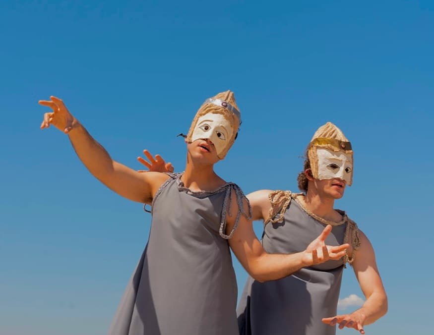 Έξι μύθοι, τέσσερις ηθοποιοί, δεκαοχτώ ρόλοι, εικοσιτέσσερις χειροποίητες μάσκες σε μια παράσταση με σκηνικό τον βράχο της Ακρόπολης.