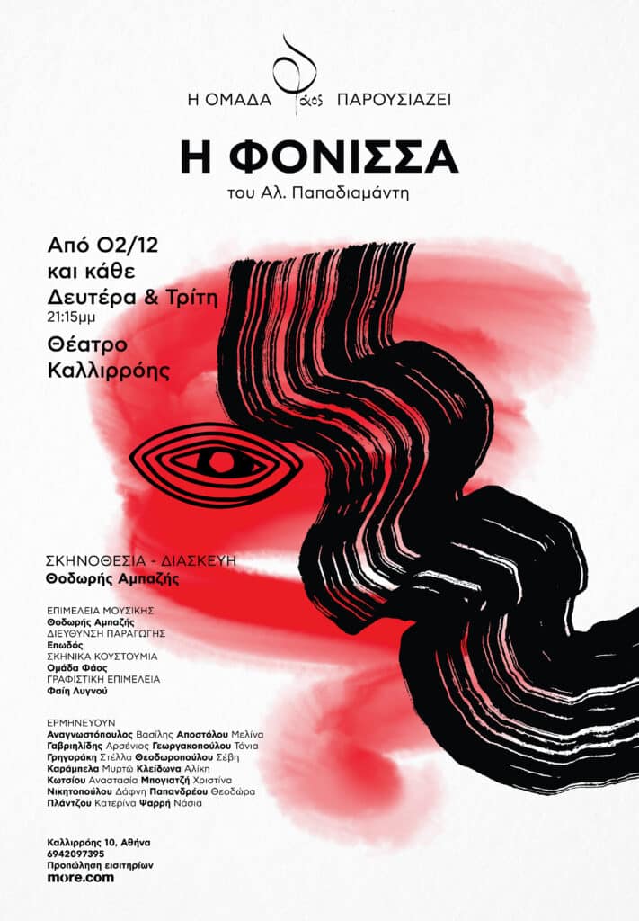 παρουσιάζει μια θεατρική διασκευή της Φόνισσας, του Αλέξανδρου Παπαδιαμάντη που γράφτηκε