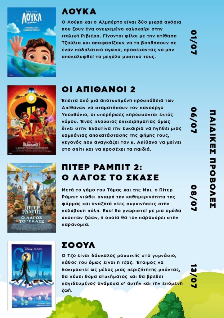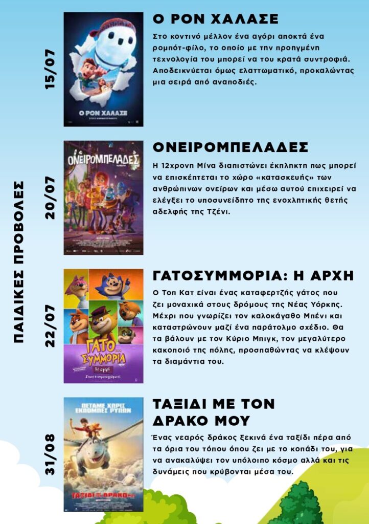 την περιοχή μας και θα γίνει θεσμός, οι ταινίες που θα προβληθούν θα είναι μια επιλογή από παιδικές,