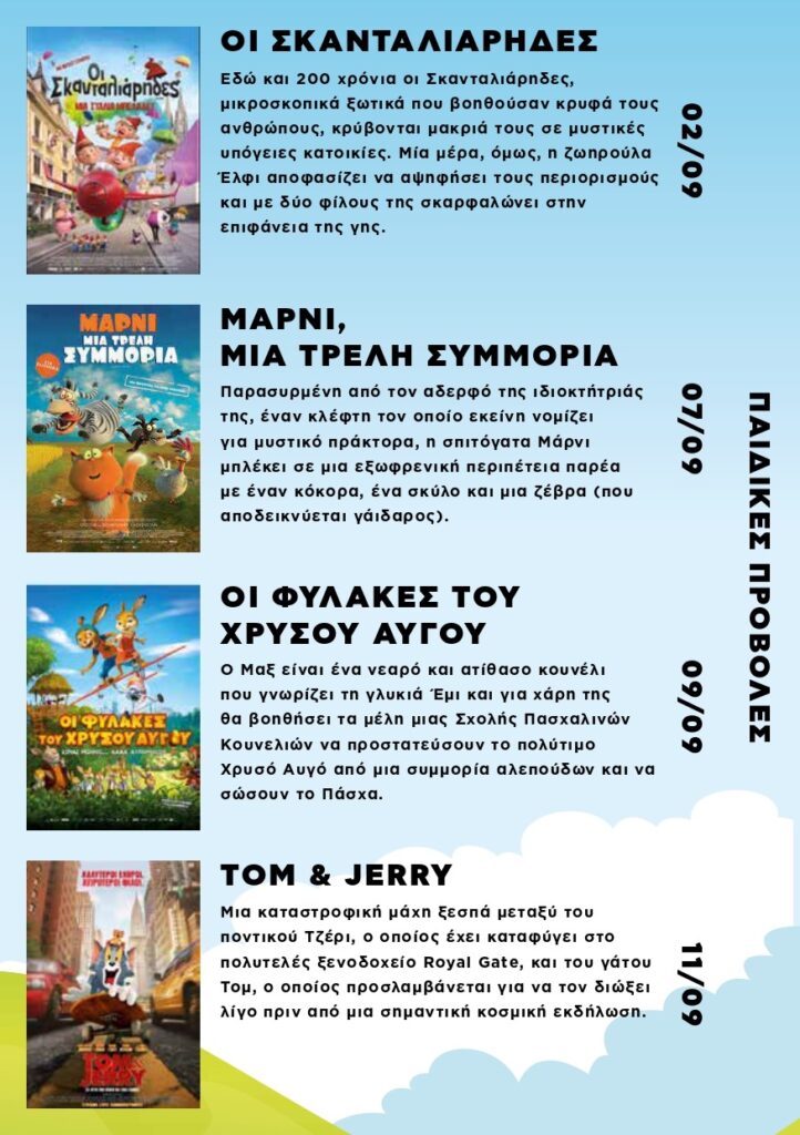 Παιδικές προβολές θα γίνονται κάθε Τετάρτη & Παρασκευή και για τους ενήλικες κάθε Δευτέρα.