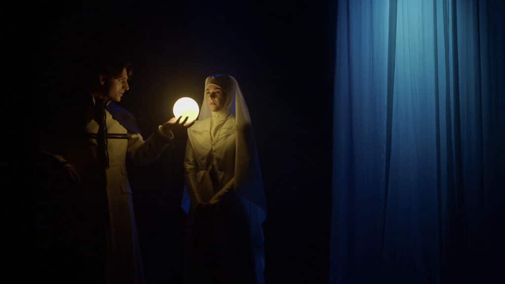 Υποδύομαι την Ηγουμένη Μάρθα, μία γυναίκα αφοσιωμένη στο έργο του Θεού αλλά και στον καθήκον της απέναντι στην σωστή λειτουργία του μοναστηριού. Δεν θέλω να πω πολλά, όχι για να μην προδώσω πράγματα για το έργο και για την παράσταση αλλά επειδή θέλω να μιλήσω επί σκηνής. Την αγαπάω πολύ, κάθε φορά που βάζω το κουστούμι της και ξεκινάει η παράσταση είμαι συγκινημένη για την ζωή που πέρασε μέσα από την γραφή του Στέφανου. Έχουμε δουλέψει πολύ για να την συναντήσω και εύχομαι οι θεατές να δουν την ψυχή της και μετά να σκύψουν μέσα τους.
