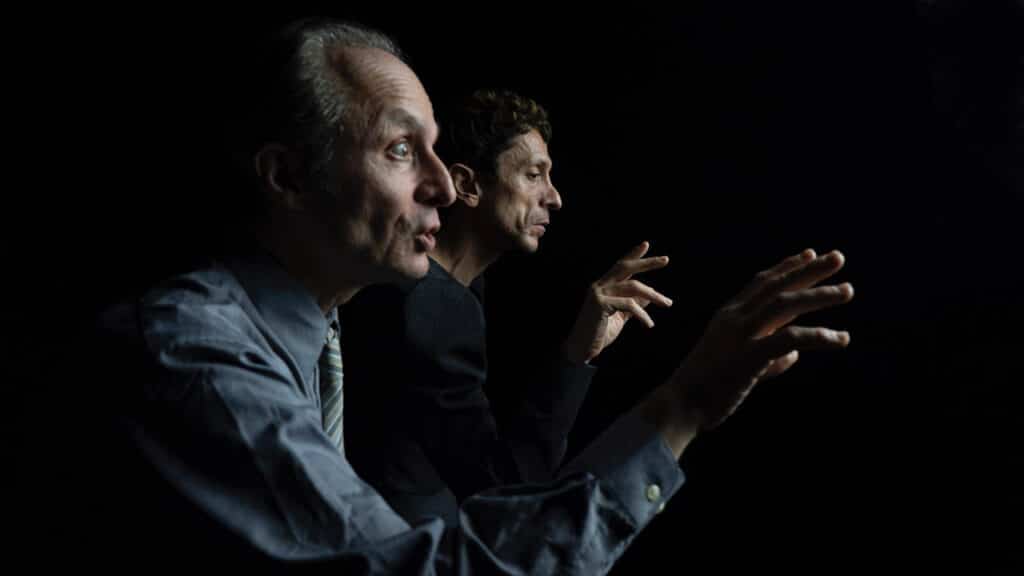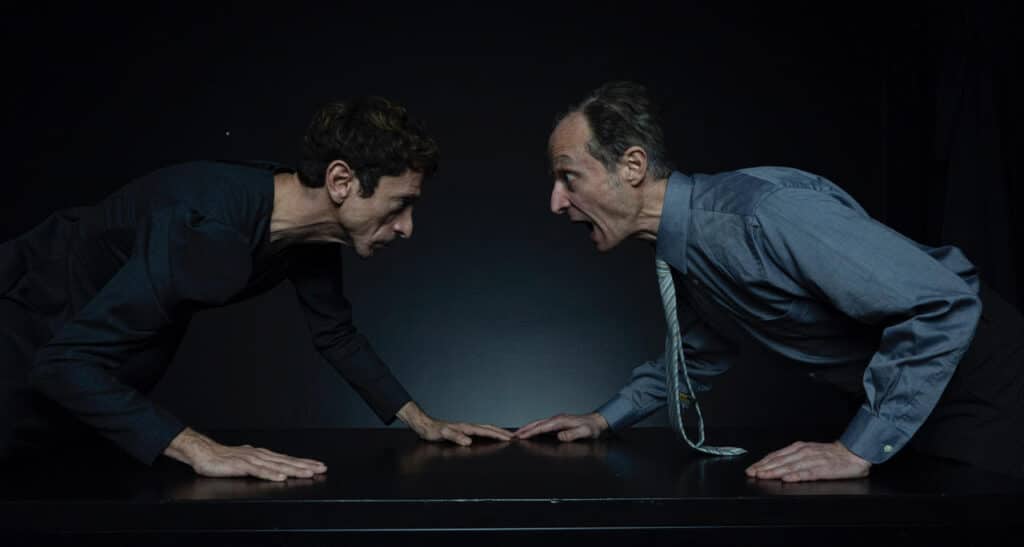 Όταν πριν από πέντε χρόνια είχα παρακολουθήσει την εκδοχή (χρησιμοποιώ αυτή τη λέξη, γιατί μια παράσταση είναι το αποτέλεσμα της σκέψης του σκηνοθέτη σε συνεργασία με το υλικό που διαθέτει – τους ηθοποιούς του-) του Βαγγέλη Βογιατζή στο Θέατρο Αργώ για το κείμενο του Τσιμάρα Τζανάτου, Εκκρεμότητα, είχε συμβεί το εξής…. ανεβαίνοντας στο φουαγιέ μόλις τελείωσε η παράσταση, συνάντησα τον Τσιμάρα και του είπα ευθαρσώς: “Αυτό κάποτε θα στο ζητήσω!”. Την άνοιξη που μας πέρασε, αναζητώντας ένα κείμενο που να με αφορά ώστε να μιλήσω ως ηθοποιός, θυμήθηκα το συγκεκριμένο έργο και επικοινώνησα με τον συγγραφέα. Η απάντησή του, χωρίς να με ρωτήσει τι σκεφτόμουν και χωρίς να ρωτήσει για τους συντελεστές (που τότε δεν υπήρχαν) ήταν η εξής: “Στείλε μου το email σου.”. Έπειτα το έδωσα στον Θόδωρο Εσπίριτου και καλέσαμε τον Σπύρο Βάρελη. Ήταν δηλαδή μια επιθυμία μου να ανέβει αυτό το κείμενο στο θέατρο και λέω “Ευχαριστώ”.
